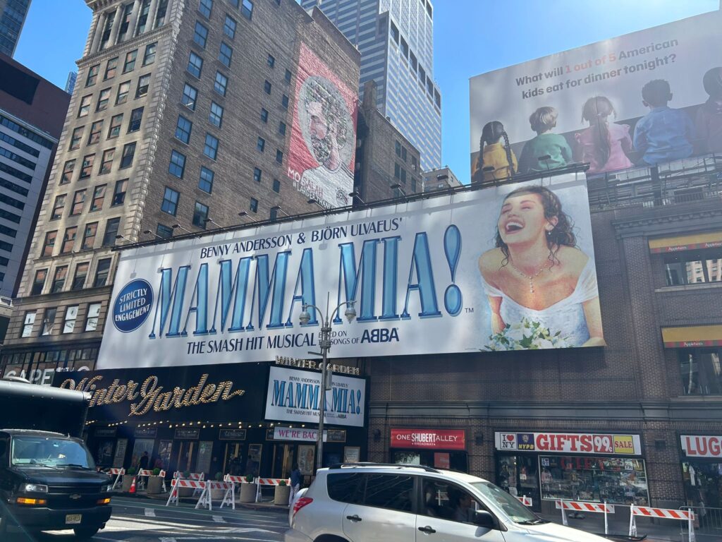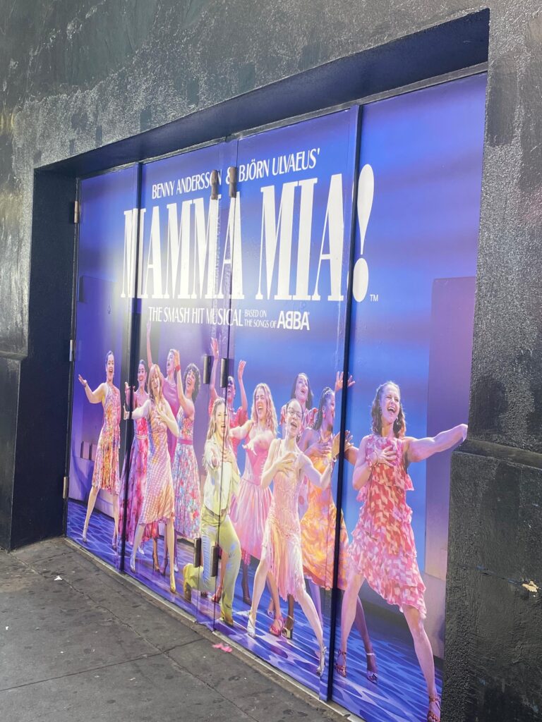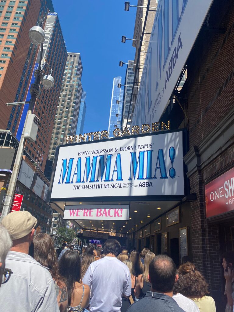 マンマミーアは、友人と当日券をゲットしましたが、立ち見席しか取れませんでした。立ち見席は1階の一番後ろで、立って見る席ですが、途中のintermissionまで空席のままの席があれば、そこに座っても良いという制度で、偶然私たちの前の席が空席だったため、後半は座ってみることができました。
